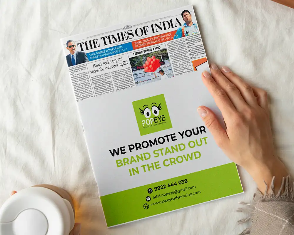 Place your ads in top newspapers with the best newspaper advertising agency, Popeye Advertising Agency. We specialize in crafting impactful newspaper advertising campaigns for prestigious publications, ensuring your message reaches the right audience. With our extensive network and expertise, we help you connect with readers of leading newspapers, maximizing your brand's visibility and engagement